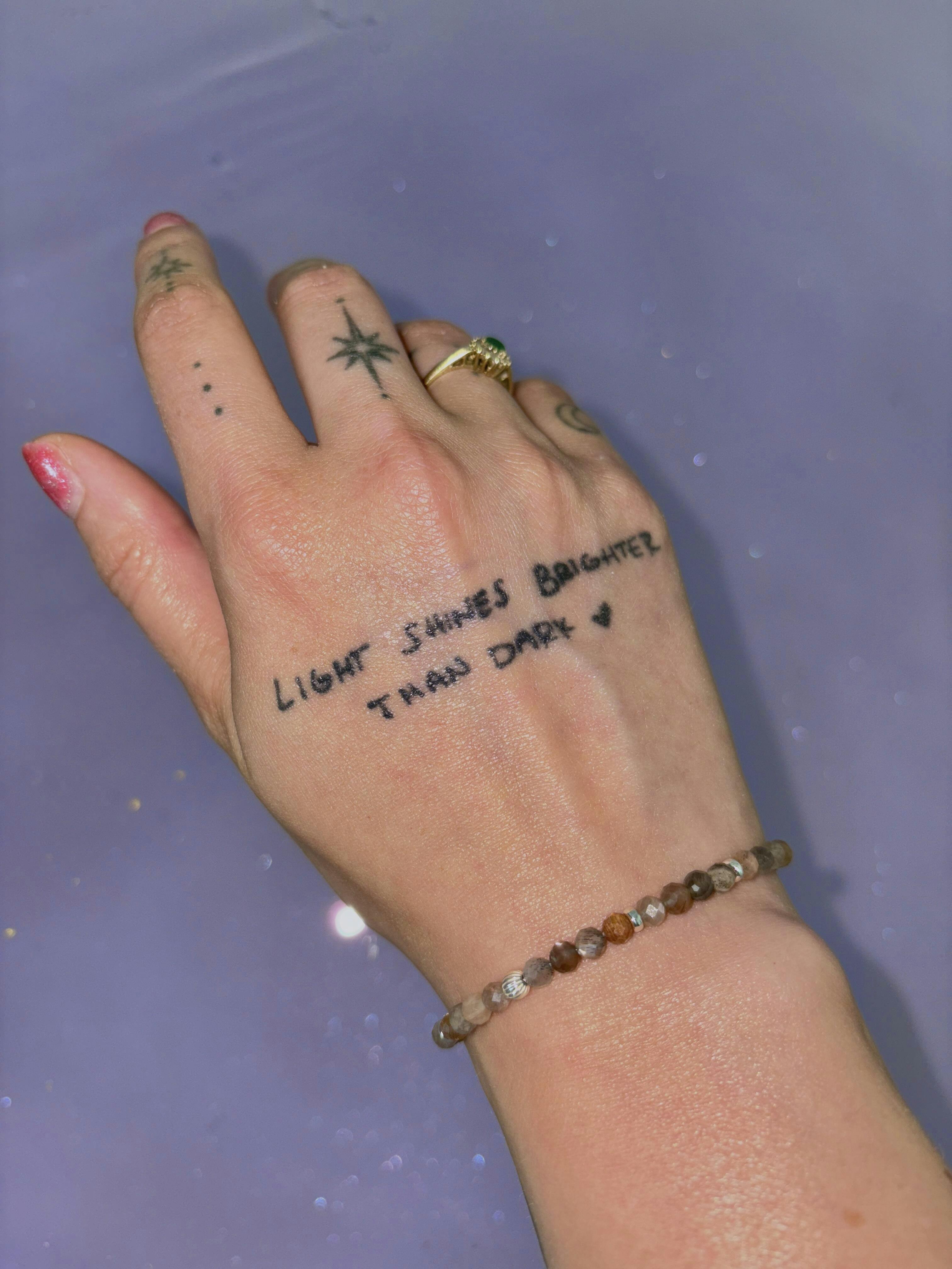The Solara Bracelet is crafted with faceted 4mm Sunstone beads that catch and reflect light with every movement. Accented with sterling silver details—including a sculpted center bead, swivel lobster clasp, and MD logo tag—this piece offers an uplifting glow that’s perfect on its own or layered in your daily stack.