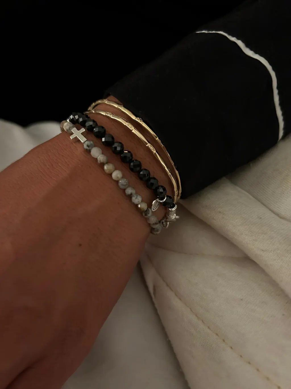 The Strata Noir Bracelet is handcrafted in Los Angeles with 5mm AAA faceted Black Spinel, prized for its depth and resilience. Each stone is separated by polished sterling silver spacers that catch the light with subtle brilliance. Finished with a swivel push clasp, it’s a versatile design that transitions seamlessly from day to night.